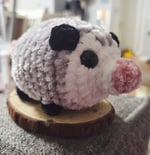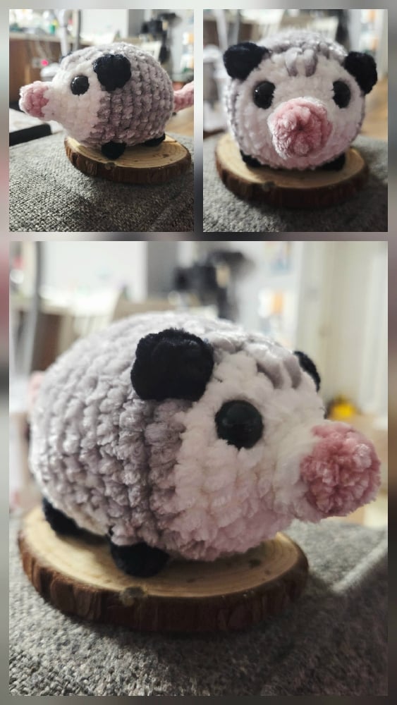 Handmade amigurumi crocheted plush opossum. Makes a wonderful small toy, desk decoration, or new best friend! Super soft and fun to play with!